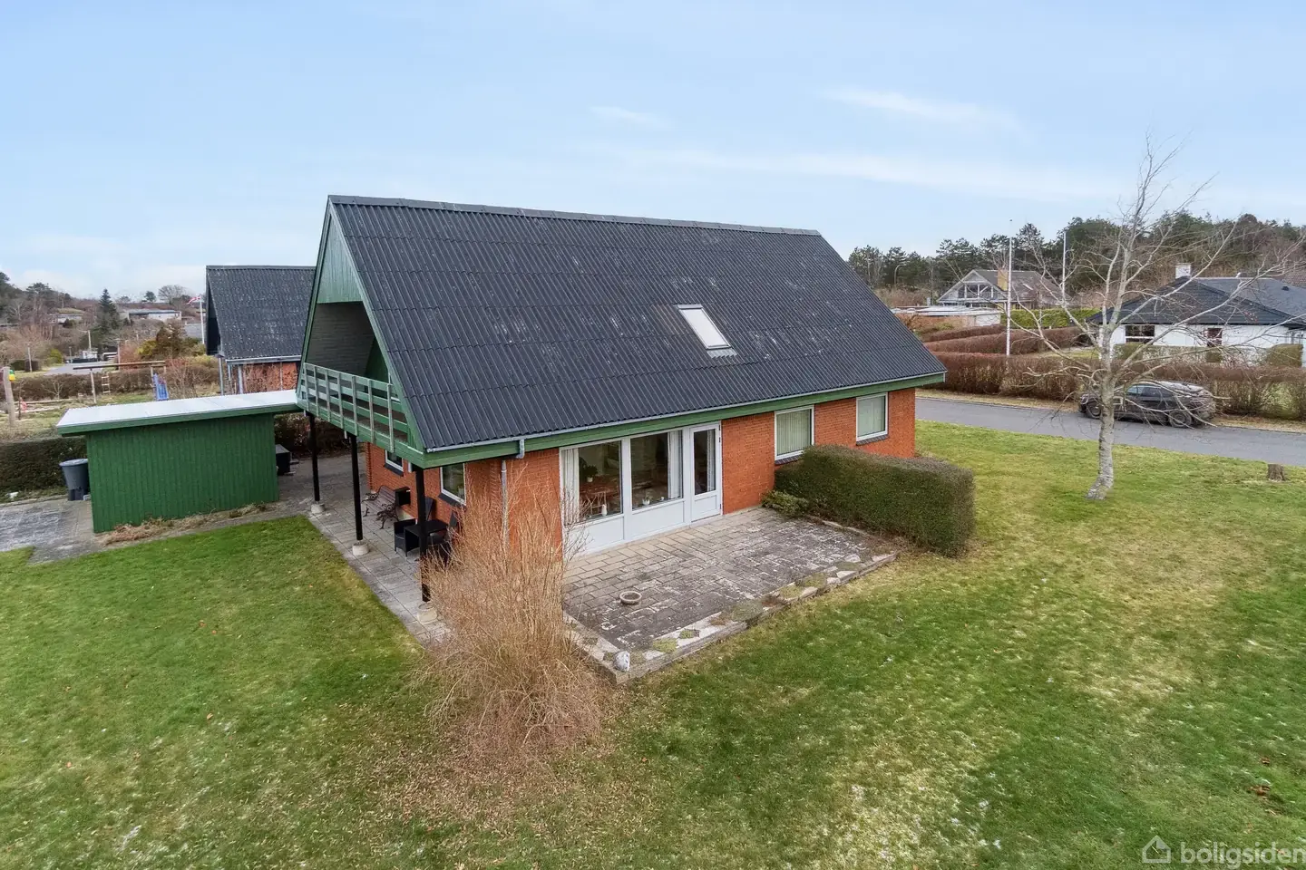 Klassisk 70'er villa med udsigt over Ebeltoft VigVelkommen til Lathyrusvej 4, som er en skøn og rummelig villa beliggende i det rolige og familievenlige kvarter, Blomstervænget. Her får du en veldisponeret bolig på 183 m² fordelt på to etager, placeret på en 945 m² stor grund med en dejlig udsigt mod Ebeltoft Vig. Ejendommen præsenterer sig med et klassisk udtryk, hvor røde mursten smelter sammen med det grønne træværk og et sadeltag, der skaber en harmonisk og indbydende facade. En flisebelagt