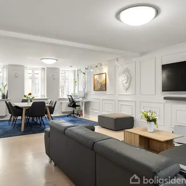 Lys, luft og ro – en sjælden perle i Københavns centrum Velkommen til Lavendelstræde 17A, 1. th. – en lejlighed der bringer ro og lys ind midt i byens puls. Her får du en bolig, med en altan der vender ud mod et fredeligt gårdmiljø, hvor hverdagens larm trænges på afstand, selvom du befinder dig få skridt fra Rådhuspladsen, Strøget og Vesterbro. Lejligheden centreres om det store, åbne opholdsrum, med lyse og brede hvor stue og køkken smelter sammen i ét lyst rum. Herfra kan du endda nyde udsi