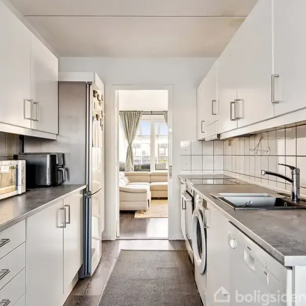 Hvis boligdrømmen inkluderer en lys og indbydende ejerlejlighed med masser af plads og god mulighed for at nyde livet - så er det meget muligt at jeres nye hjem findes lige her.Lejligheden ligger meget fordelagtigt øverst oppe og I slipper derfor for støj fra gennemgang i opgangen. Det betyder, at I får et hjem med ekstra ro og privatliv. Lejligheden har et fantastisk lysindfald og en flot udsigt over området. Den store lukkede terrasse giver også alverdens muligheder til at benytte de ekstra m2