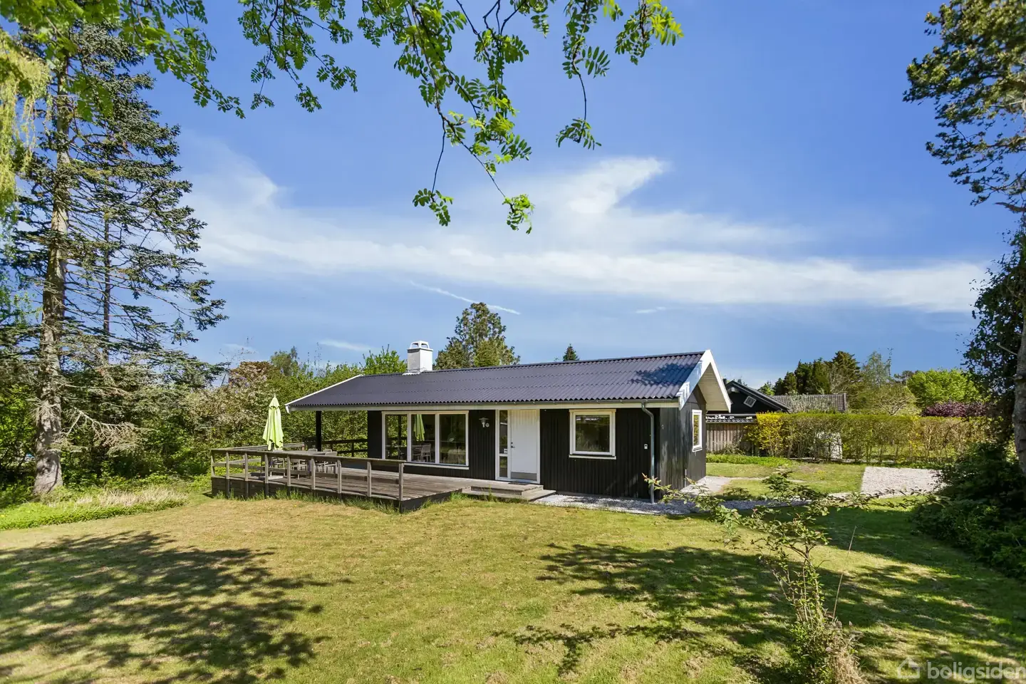 Skønt sommerhus i fredelige Bakkebjerg – tæt på natur og strand I det eftertragtede og rolige Bakkebjerg-område nær Rågeleje ligger dette indbydende sommerhus, omgivet af fred og grønne omgivelser. Her er der lagt op til ægte sommerhusstemning med en solrig have og en stor, delvist overdækket træterrasse, hvor livet kan nydes i fulde drag – uanset vejret. Huset fremstår i god stand med smukke fyrtræsplankegulve, brændeovn og et nyere køkken i delvis åben forbindelse til det lyse leverum. Fra st