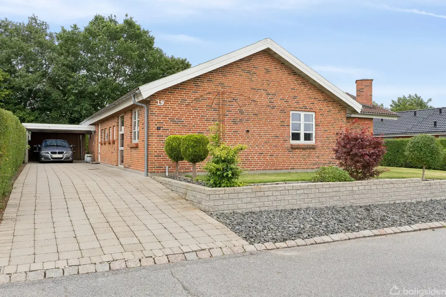 På et lukket vænge i et roligt og attraktivt kvarter i Ikast ligger denne velholdte villa, som fordeler sine 141 kvm i ét plan. Med sin fine rødstensfacade, den velanlagte indkørsel med carport og den sirlige forhave fremstår boligen præsentabel og indbydende fra første ankomst. Indvendigt fortsætter det gode indtryk, da villaen er moderne og gennemført med en tydelig rød tråd i materialevalg og indretning. Hjemmets hjerte er det åbne opholdsmiljø, hvor køkken-alrummet er naturligt forbundet me