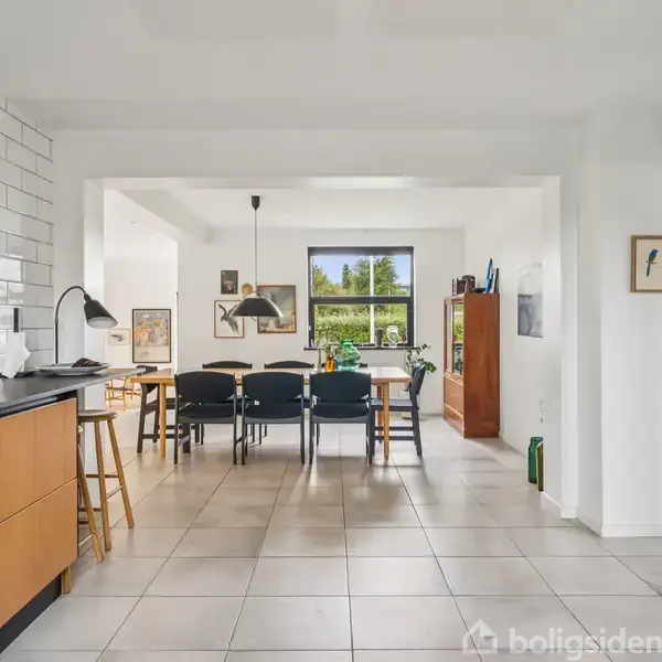 I rykker livet til en adresse, som kombinerer familiens ønsker om ro med en central beliggenhed, der får hverdagen til at forløbe gnidningsfrit. Matriklen råder over et pragtfuldt udemiljø med dejlige terrasser og en hyggelig have, mens indretningen følger trop og inviterer til samvær i køkken-alrummet, ligesom der er god plads til store som små med hele 252 etagemeter. Husets hjerte udgøres uden tvivl af køkken-alrummet, hvor I har et langt view på tværs af det indbydende samlingspunkt: Her ka