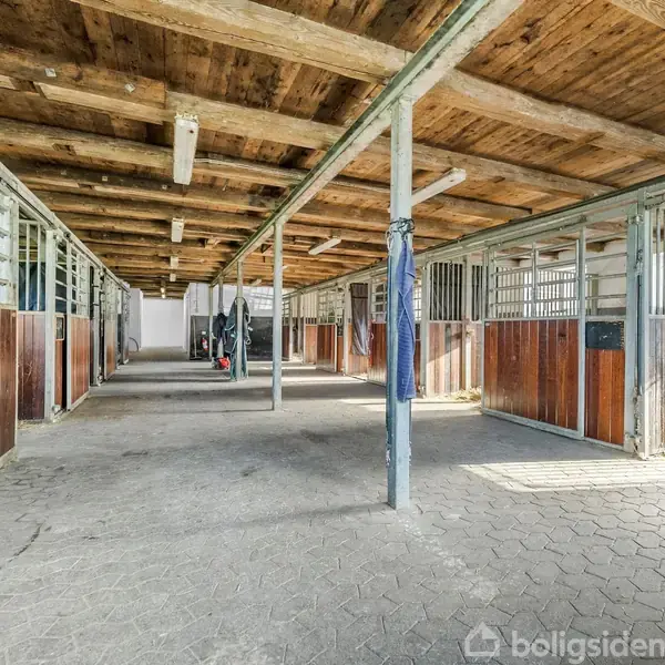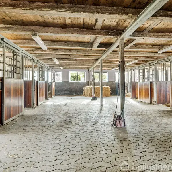 Veletableret hestepension – tæt på Ulkerup Skov Velkommen til en sjældent udbudt hesteejendom i naturskønne omgivelser med direkte adgang til den fredede Ulkerup Skov. Her forenes moderne faciliteter med gennemført funktionalitet og en beliggenhed, der sjældent kommer til salg. Ejendommen råder over 16,6 hektar tilhørende jord og fremstår som et veldrevet hestepensionat. Der er mulighed for udstykning med et areal på mellem 16,6 ha og 29 ha. En separat indkørsel til staldafsnittet sikrer optimal opdeling mellem privatbolig og hestedrift. De eksisterende faciliteter rummer i alt 27 hestebokse, heraf 20 med svingbare fronter, hvilket muliggør maskinel bundmugning og effektiv drift. Alle bokse er samlet under ét tag, men er opdelt i tre staldsektioner, som sikrer ro og struktur. Staldene er lyse og rummelige, med brede staldgange, store vinduespartier og et sundt staldmiljø i centrum. Centralt i bygningen findes opvarmet og aflåst sadelrum, foderrum, vaskeplads med solarium samt strigle- og opsadlingsplads. Hertil kommer en stor rytterstue med køkken og separat badeværelse. Ridefaciliteterne omfatter ridehus på 20 x 40 meter med fiberbund og store vinduespartier, 20 x 60 udendørs ridebane samt velanlagte folde, der løbende er plejet og vedligeholdt for at sikre god græskvalitet gennem størstedelen af året. Ovenpå stalden findes et stort loft med støbt betongulv og rig mulighed for opbevaring af dækkener, ekstra foder og udstyr. I en separat bygning er der etableret løsdriftstald med 3 afdelinger, hver med direkte adgang til egen fold samt lagerplads til hø, halm og nødvendige materialer. Til ejendommen hører desuden to moderniserede lejligheder på samlet 160 m², der er ideelle til personale, opstaldere eller som privat udlejning. Begge lejligheder blev renoveret i 2005 og fremstår i god stand. Lejlighederne er på nuværende tidspunkt udlejet til hhv. kr. 5.300 og kr. 6.300 pr. måned. Stuehuset fra 1955 rummer 179 m² bolig og 60 m² kælder. Indretningen er funktionel med fem værelser, walk-in-closet og badeværelse med karbad. Førstesalen åbner op for en imponerende udsigt over de omkringliggende arealer. Ejendommen trænger til modernisering. Med en placering direkte ud til ca. 500 hektar skov byder ejendommen på noget af det bedste rideterræn, man kan ønske sig. Her er der adgang til vidstrakte naturoplevelser, hvad enten man er til rideture, gåture eller cykling i det kuperede og varierede landskab.