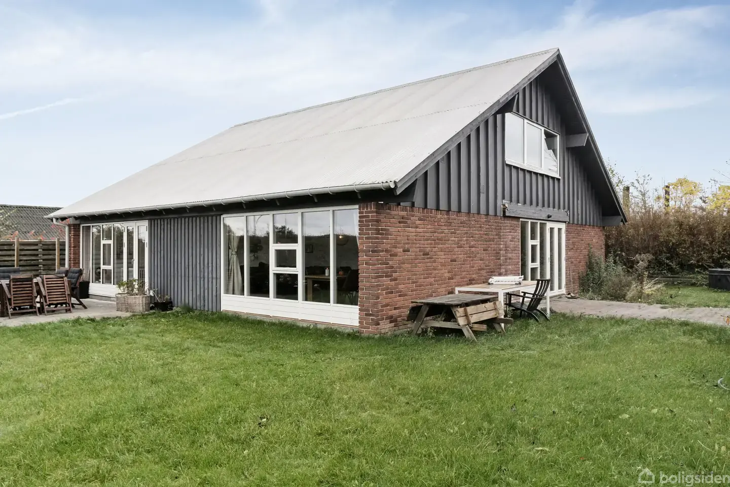Børnefamilien: Villa på 193 m² med plads til hverdagens aktiviteter og gode udearealer. Her får I et hjem fra 1975, placeret på en grund på 791 m², med i alt 6 værelser og 2 badeværelser. Første indtryk er et lyst og åbent stueplan, hvor store vinduespartier og terrassedøre skaber en tydelig forbindelse til haven. Husets facade i kombination af mursten og vertikal træbeklædning giver et robust udtryk og god visuel tyngde. Indretningen er veldisponeret med et stort stue-/alrum i åben forbindelse