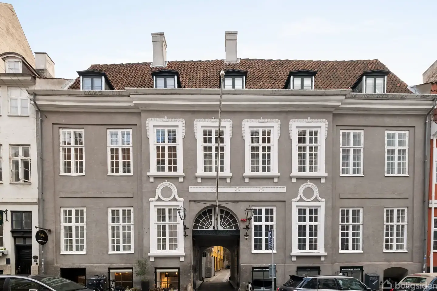 Lille Strandstræde 14, Brigadiér Hallings Gård, gemmer på endnu en sjælfuld boligoplevelse. Bag den historiske port - hvor man nærmest kan høre ekkoet af datidens hestevogne og købmænd - folder 112 lyse og luftige kvadratmeter sig ud i en lejlighed, der både føles moderne og umiskendeligt københavnerklassisk.Her træder du ind på de smukke, klassiske plankegulve, der bærer rummene med en blød varme, og videre ind i et stort, åbent opholdsrum, hvor stue, spiseplads og køkken smelter sammen omkring