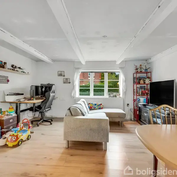 Sammenbygget ejendom beliggende centralt i Horbelev – en hyggelig landsby med skole, børnehus og lokale fritidsaktiviteter. Beliggenheden i Horbelev byder på et trygt nærmiljø med kort afstand til dagligvareindkøb, friskole, busforbindelser og grønne omgivelser. Der er nem adgang til både Nørre Alslev og motorvejen mod København, hvilket gør hverdagen bekvem for pendlere.Indenfor finder man entre, som leder ind til boligens stueplan med god plads til hverdagens aktiviteter. Køkkenet fremstår fun