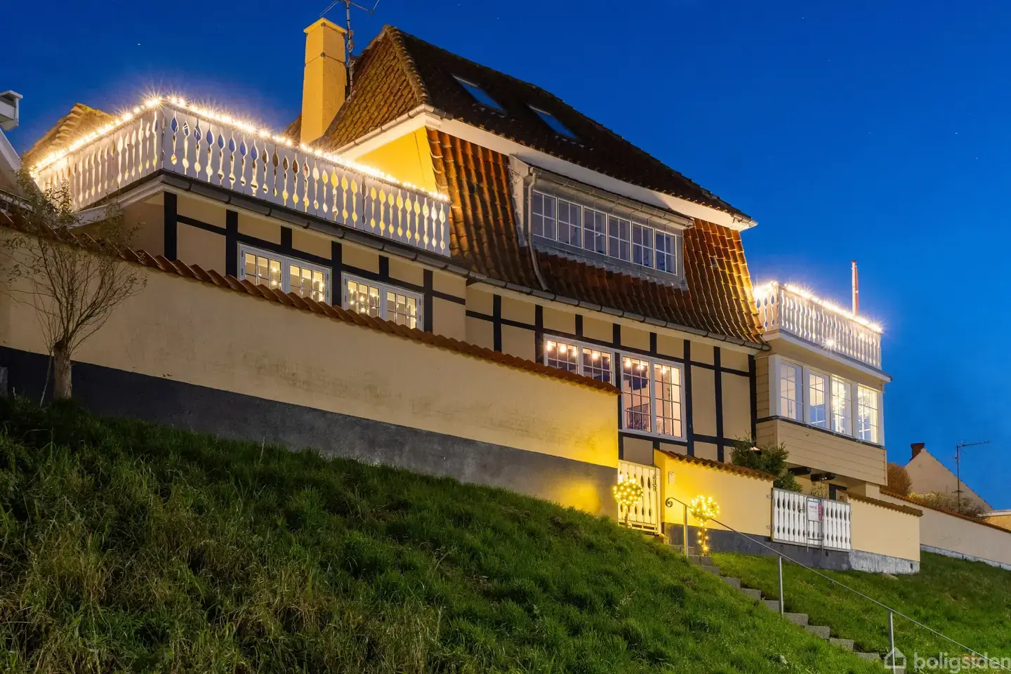 Hvis drømmen er at vågne til lyden af skvulpende bølger, så kom med til Lillegade 27 i Rønne. Her venter jer et fantastisk hus med skønne terrassemiljøer, havudsigt og få skridt til Nørrekaas Strand. Ejendommens 256 kvm tilgodeser familien med masser af plads til samvær og privatliv. I stueplanet møder I et dejligt køkken med dobbeltdøre ind til stuen, hvor I arrangerer spisebordet, så I får fuldt udbytte af viewet til vandet, der danner en magisk baggrundskulisse. Videre har I en stor stue til