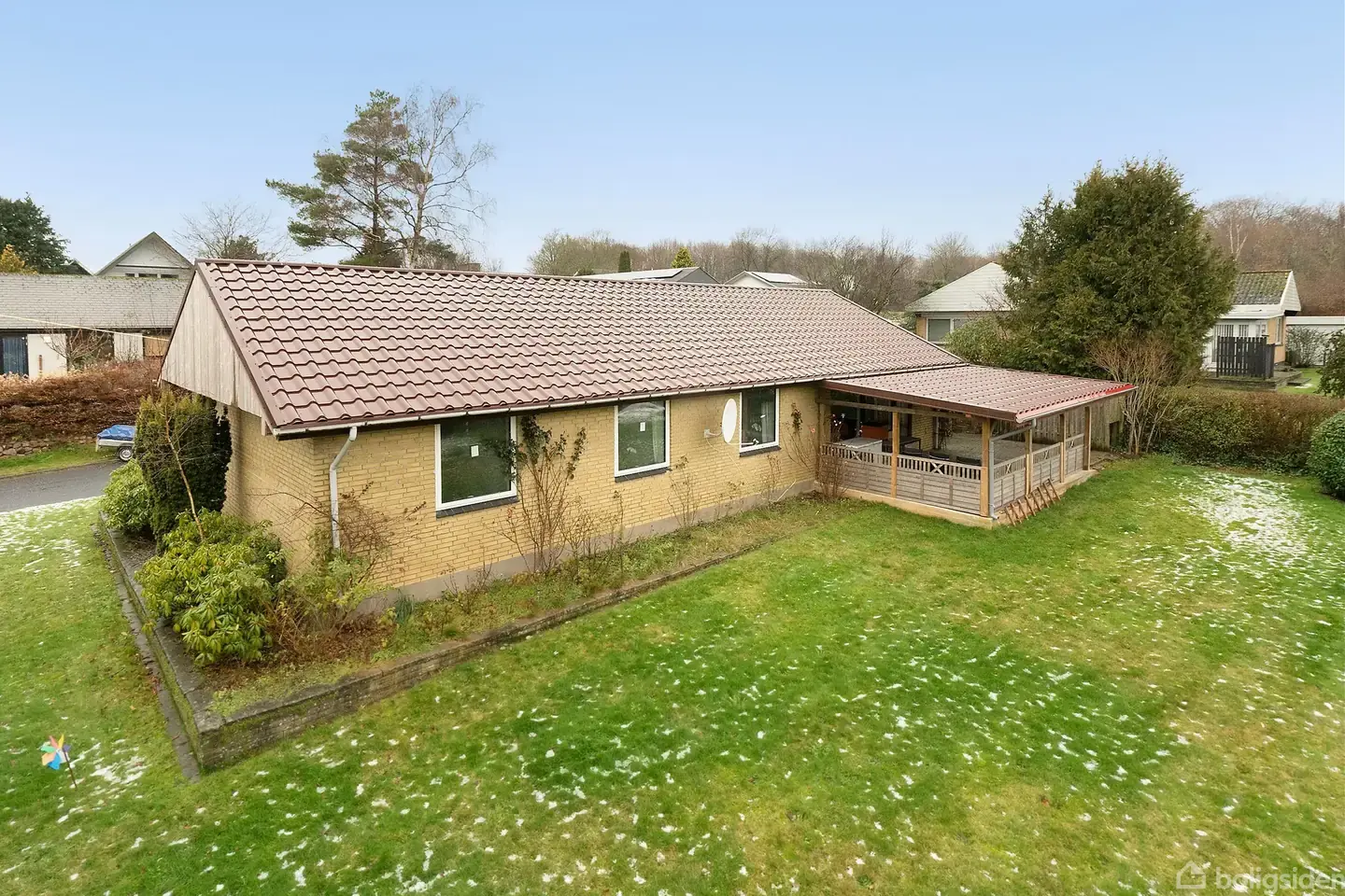 Åbent hus med tilmeldingskrav 1/2 - klik på billede - Velkommen til Lindbjerg Allé 4 – en villa på 134 m² i ét plan fra 1973, placeret på en rolig og lukket villavej i Nørre Snede. Her får du en bolig med solide rammer, løbende forbedringer og mange muligheder for at sætte dit eget præg. Ejendommen egner sig til førstegangskøberne, det unge par eller hvis i søger en ny villa, nu hvor børnene er flyttet hjemmefra. Villaen ligger i kort afstand til byens centrum med gode indkøbsmuligheder, skole, stier og grønne områder. Legepladsen og tarzanbanen ved Kirkeskoven er lige i nærheden, hvilket gør området attraktivt for både børn og voksne, der sætter pris på natur og aktivitet. Indenfor mødes du af et vindfang med klinkegulv og videre en mellemgang med garderobeplads. Den lyse vinkelstue er husets naturlige opholdsrum, og herfra er der udgang til den sydvestvendte have og den nyopførte, overdækkede terrasse på 23 m², som giver en dejlig udvidelse af boligens uderum. Køkkenet er indrettet med spiseplads og ligger i direkte forbindelse med stuen, hvilket gør det oplagt for kommende ejer at tænke i et fremtidigt køkken/alrum. Villaens værelsesafdeling består af fire soverum – tre med faste skabe og soveværelset med skabsvæg – hvilket giver fleksible indretningsmuligheder. Badeværelset er med kar og klinkegulv, og det rummelige bryggers fungerer som praktisk overgangsrum med vask, bordplads og installationer som fjernvarmeindgang samt vand- og elmåler. Udenfor er flere større forbedringer allerede udført: • Nyt ståltag fra 2024 • Nye gavle • Nye vinduer mod haven Her får du en ejendom, hvor flere af de tunge poster allerede er håndteret, og du har mulighed for løbende at modernisere indvendigt efter egne ønsker. På grunden findes desuden en garage på 24 m² opført i gule sten. Nørre Snede – byen med kraft og hjerte, velfungerende lokalsamfund, skønt placeret på den midtjyske højderyg nær Rørbæk Sø, fyrreskove og kuperede terræner. Du kan komme tæt på naturen ad de mange stier i området. Hærvejen indbyder til længere ture, og Hjertestien omkring byen dækker motionister og livsnyderes behov. Geografisk ligger Nørre Snede perfekt i forhold til jobsøgning til dem, der kører et stykke til arbejde. Der er gode pendlermuligheder med maksimalt 45 kilometer til både Brande, Billund, Herning, Silkeborg, Horsens og Vejle. Fra byen er der også busafgange til hele Midtjylland. Der er gode indkøbsmuligheder i byen med to store dagligvarebutikker, og butikslivet trives – også med flere specialbutikker. I byen findes desuden lægehus, apotek, tandlægehus, fysioterapi og fodspecialister. En by i stadig udvikling. Nørre Snede Skole er tosporet med elever fra 0.-9. klasse. I 2018 kunne Nørre Snede indvie en gennemrenoveret skole med en helt ny hovedbygning. Skolens multisal er åben for hele byen, og folkebiblioteket deler lokaler med skolebiblioteket. Derudover børnehave, med en fantastisk beliggende på en dejlig naturgrund. Se mere på www.flyttilikastbrande.dk/noerre-snede