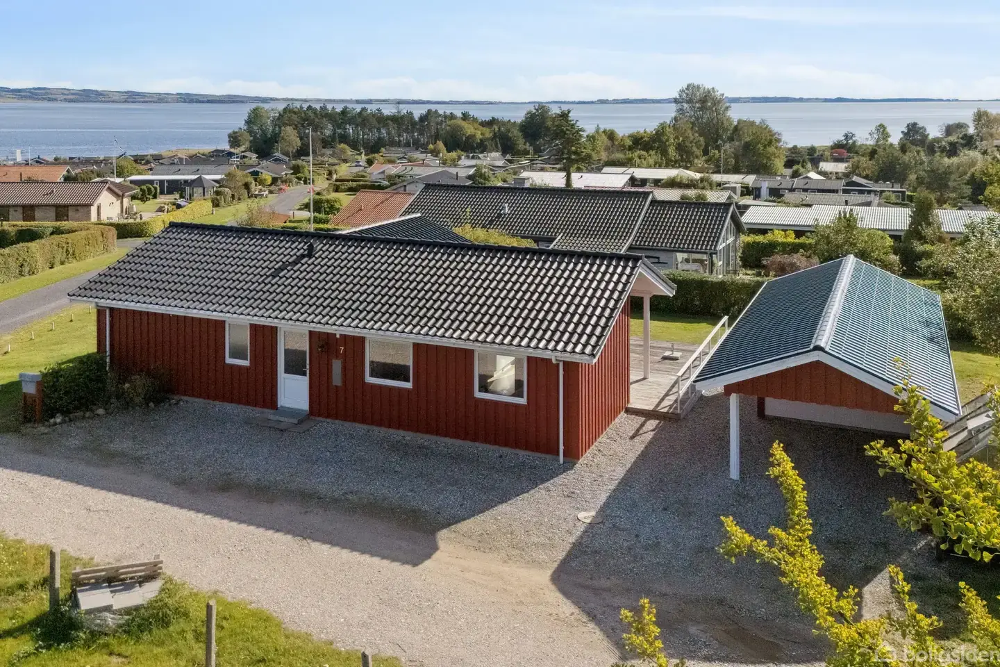 Fritidshus med fantastisk udsigt over Kalø Vig – i hjertet af Følle StrandDrømmer du om et fritidshus, hvor både beliggenhed, udsigt og indretning går op i en højere enhed? Dette charmerende og solide, rødmalede træhus ligger højt i landskabet i den attraktive, nordvestlige del af Følle Strand – en kort gåtur fra områdets børnevenlige badestrand og hyggelige ishus. Her får du et fristed med ro, natur og en fortryllende udsigt, samtidig med at både Rønde og Aarhus er inden for kort køreafstand. I