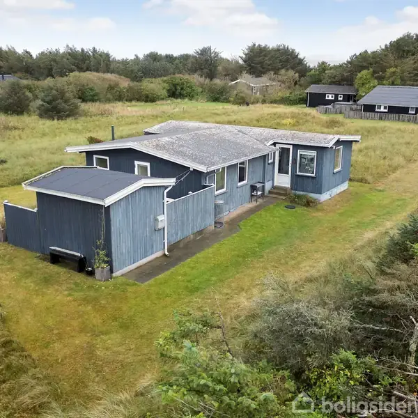 På en helt særlig og sjældent udbudt kuperet grund i Grønhøj finder du dette hyggelige ældre fritidshus, beliggende midt i det smukke, marehalmsklædte klitlandskab. Grunden er på hele 2.485 m² og byder på kuperet terræn, fredelige omgivelser og et fint kig til havet. Her er blot 355 meter til en af vestkystens bedste badestrande – Med nem adgang til stranden – til fods ad den etablerede strandsti eller på cykel ad den nærliggende Strandvej. Huset har et boligareal på 53 m² og rummer alt, hvad man behøver til den klassiske sommerhusferie: En hyggelig stue med udgang til en sydvendt terrasse. Nyere køkken med opvaskemaskine i åben forbindelse med stuen. I den 11 kvm. overdækkede terrasse er der etableret en lys udsigts-udestue. To gode soveværelser og et mindre værelse. Fint nyere badeværelse med bruseniche, vaskemaskine og gulvvarme. Entré med adgang fra en lukket, østvendt gårdhave, der ligger imellem huset og det tilhørende udhus på 8 m². Som en ekstra kvalitet byder boligen på en skøn sydvestvendt terrasse, etableret i 2017, hvor man kan nyde solens stråler dagen igennem og de smukke aftentimer. Grunden er noget helt særligt – både i størrelse og karakter – og giver mulighed for opførelse af et nyt fritidshus på op til 150 m² samt et udhus eller garage på op til 35 m². Dermed er dette også en oplagt mulighed for dig, der drømmer om at opføre et nyt hus i første klitrække, men samtidig gerne vil nyde det eksisterende hus i mellemtiden. Her får du en unik kombination af beliggenhed, natur og potentiale – i et af Vestkystens mest eftertragtede sommerhusområder.