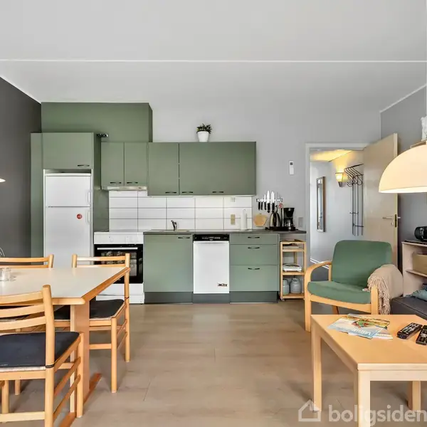 Søger du en central feriebase i Søndervig? Så kig med her! På Lodbergsvej 239G, 104 finder du denne hyggelige ferielejlighed, beliggende midt i Søndervig. Ferielejligheden har fået udskiftet køkken og gulve i 2021, der er også blevet installeret en luft til luft varmepumpe. Lejligheden byder velkommen i en entré med plads til sko og jakker. Herfra er der adgang til et rummeligt soveværelse med dobbeltseng og god skabsplads. I forlængelse heraf findes et praktisk depotrum med ekstra opbevaringsmuligheder. Badeværelset er funktionelt indrettet med god plads og bruseniche. Lejlighedens naturlige samlingspunkt er spise- og opholdsstuen, hvor køkkenet ligger i åben forbindelse. Køkkenet er funktionelt og veludstyret, så du nemt kan tilberede lækre feriemåltider. Opholdsstuen indbyder til hyggelige stunder – både i sofaen og omkring spisebordet til spil og samvær. De store sydvendte vinduespartier sørger for et skønt lysindfald. Fra stuen er der udgang til den overdækkede terrasse mod syd, hvor du kan nyde solen og feriestemningen det meste af dagen. Med denne lejlighed bor du helt centralt i Søndervig med kort afstand til både Vesterhavet, indkøb, shopping, caféer og restauranter. Er du golfentusiast, finder du desuden en lokal 18-hullers helårsbane i området.