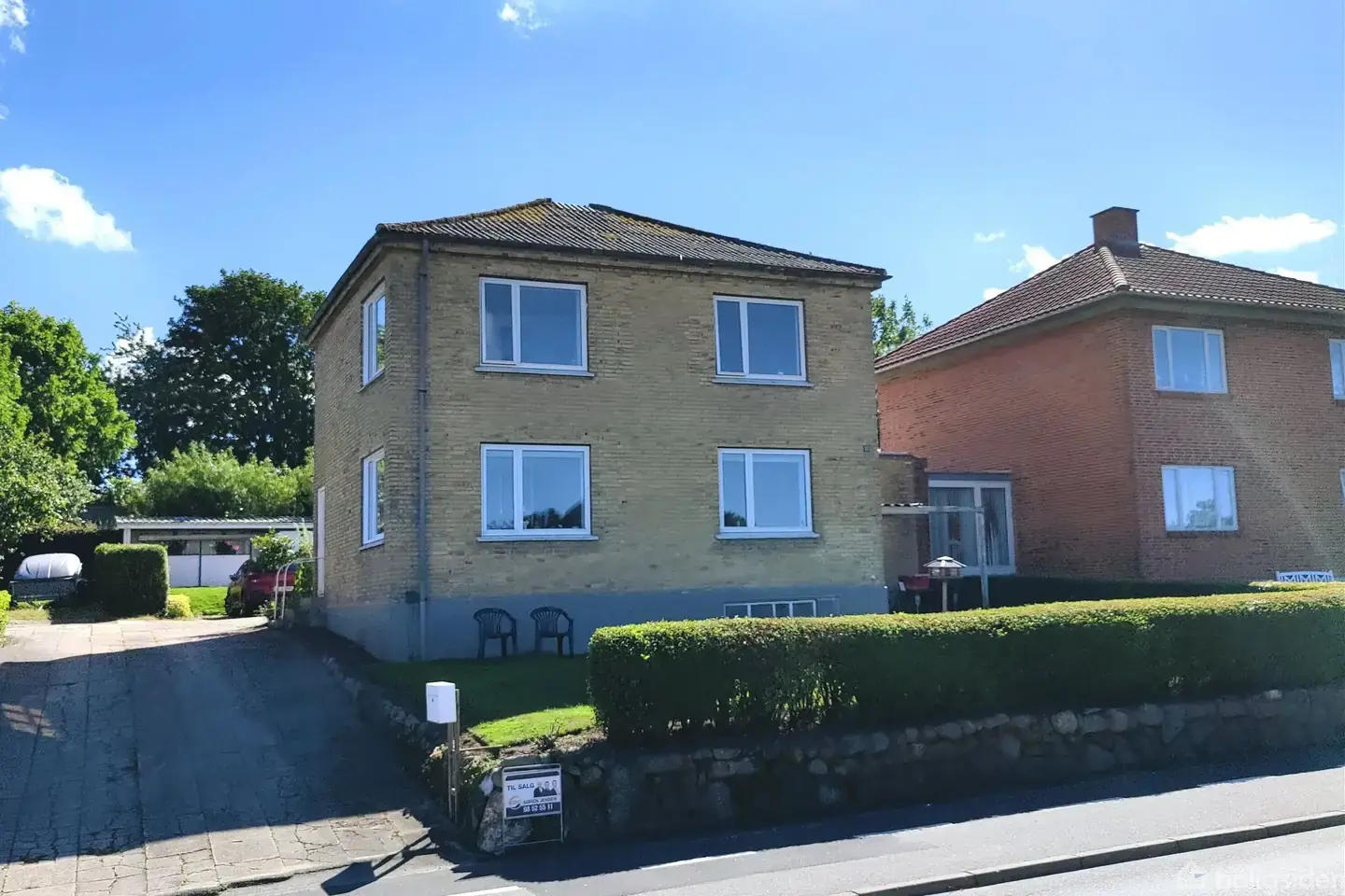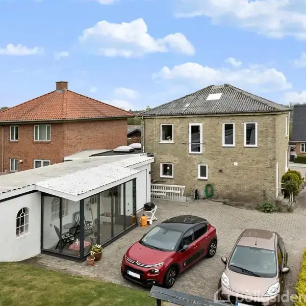 Åbent hus med tilmeldingskrav 18/2 - klik på billede - Nu har du muligheden for at købe denne fine gulstensvilla i ”bungalowstilen”, der var meget karakteristisk for 30érne, hvor ejendommen er opført. Her er der nemlig to fulde etager i stedet for en alm. 1. sal, hvor der er skråvægge. Villaen ligger i en af Hobros mest attraktive bydele - Hørby Skoleby - hvor adgangen til Hobro C, banegård og motorvejen er nem og hurtig og hvor der er alt, hvad en familie har brug for i sin hverdag. (indkøb, skole, børnehave, idrætsfaciliteter osv.) Villaen er indrettet med over- og underetage og en mindre kælder. Underetagen byder på; Vindfang, en stor vinkelstue med trappe til overetagen. Stuen ligger i åben forbindelse til køkkenet. Moderniseret badeværelse med bruseniche. I en tilbygning, er der indrettet kombineret entre og bryggers samt et værelse, der ikke er medregnet i boligarealet. Fra entreen kan man gå ud i gårdhaven. Overetagen er indrettet med et stort repos, hvor man nemt kan have tv-stue, kontor, multirum mm., der er et soveværelse, værelse og et større badeværelse. Kælderen har udvendig adgang og indeholder et vaskerum og to disp. rum. Boligen ligger først for på grunden, hvilket giver et rigtig dejligt gårdhavemiljø bagved. Foruden flere opholdsarealer / terrasser, er der bagerst i haven redskabsrum og overdækket udhus. Mod naboen er der et udhus, der er indrettet med gildesal/slyngelstue der har bar og en brændeovn, så rummet kan bruges året rundt. Der er også en havestue og en garage. Villaen er i en god vedligeholdt stand. Skulle man ønske det ville den også være en perfekt ramme for en moderne funkisvilla. Fra overetagen er der faktisk et godt kig udover by og natur.
