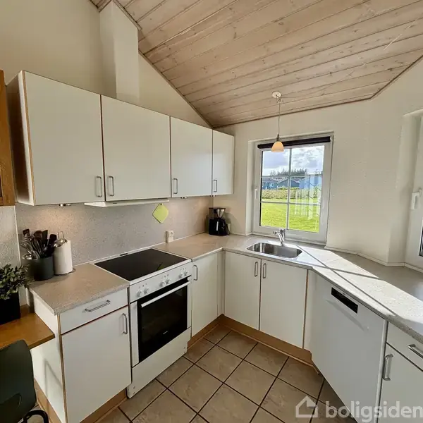 Velkommen til dette hyggelige fritidshus, som ligger ved det populære feriecenter, SeaWest. Her får man en attraktiv beliggenhed med gode parkeringsforhold og kort afstand til centerbygningen. Til huset hører en dejlig og delvist overdækket terrasse, som vender mod sydvest, hvilket gør det muligt at nyde solens stråler i store dele af dagen. Her er man tæt på Blåbjerg Plantages storslåede natur og mange stier – og man har flere af Danmarks mest populære badestrande inden for 15 minutters kørsel. Desuden er der blot omkring 3 kilometer ind til Nr. Nebel, hvor der er mange indkøbsmuligheder. Huset udlejes gennem Novasol og indbragte i 2024 kr. 91.000 til ejer, og i 2025 ligger lejen pr. september på kr. 72.000. Området byder på en masse gode fritidsaktiviteter og med medlemskab af ejerforeningen er der fri adgang til badelandet. Centret byder desuden på et bowlingcenter, badmintonbaner, fitness, wellness, restauranter m.m. Grundejerforeningen står for klipningen af plænen. Der er indgang til sommerhuset via en praktisk og klinkebelagt entré. Her er masser af skabsplads samt mulighed for at stille skoene og hænge jakkerne. Nogle af skabene kan låses, hvilket gør dem ideelle til opbevaring af personlige ejendele. Der er gulvvarme i hele huset – med undtagelse af soveværelserne. Husets velindrettede køkkenafdeling er med god bord- og skabsplads, en opvaskemaskine fra 2025 samt et køle-fryseskab. Fra køkkenet er der åben forbindelse til opholdsrummet. Her er der både en spiseplads og en særdeles pænt møbleret stueafdeling med tilhørende brændeovn. Sommerhuset har også et moderne og smagfuldt badeværelse med bruseniche, spa, vask i skabsarrangement samt en kombineret vaskemaskine og tørretumbler. Sommerhuset har tre flotte og rummelige soveværelser – alle med dobbeltsenge. Hertil kommer en hems. Alt i alt er her tale om dejligt fritidshus, som både egner sig til udlejning og privat brug.
