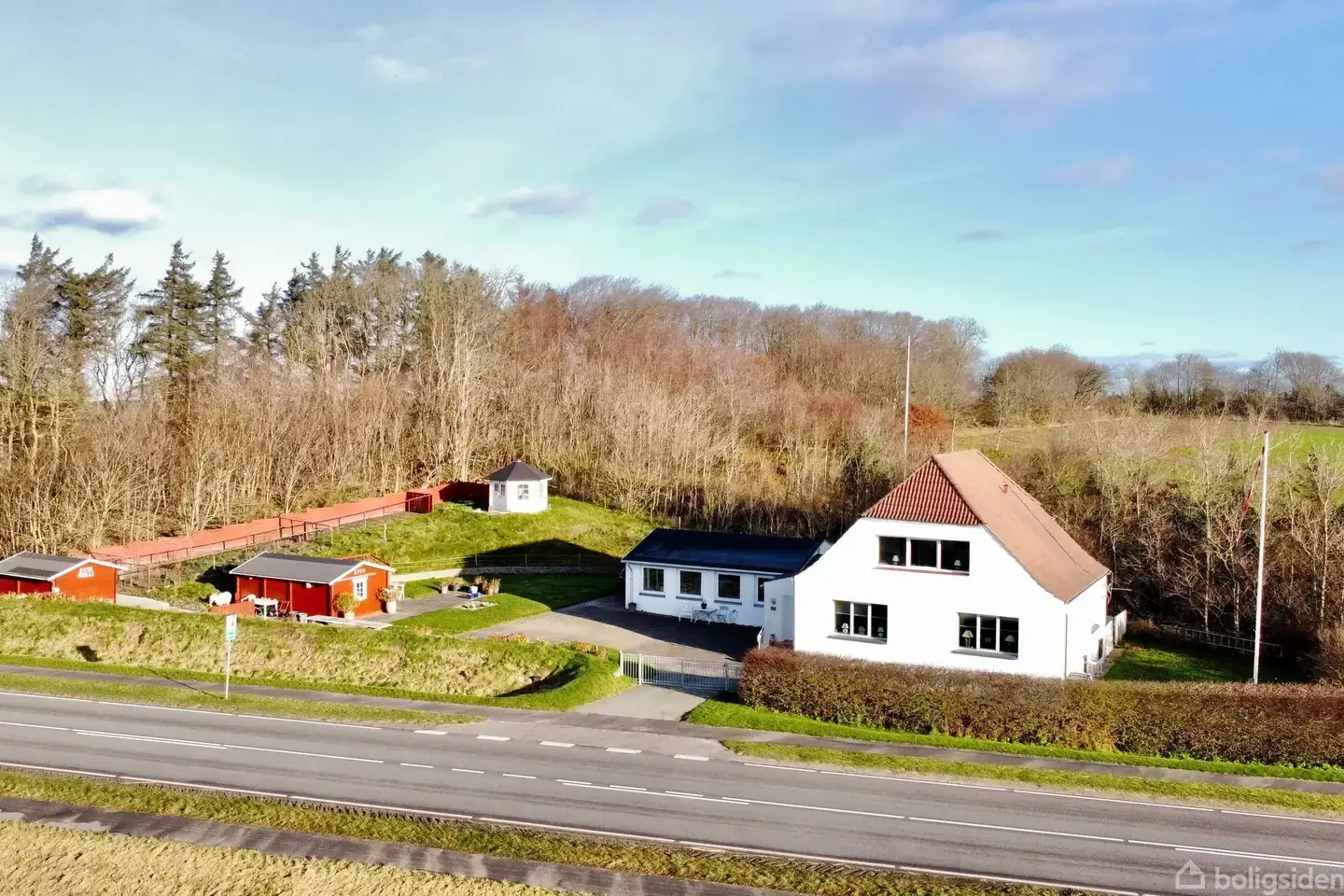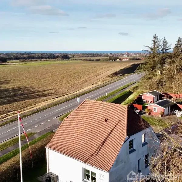 Beliggenhed: Lønstrup ligger ca. et kvarters kørsel fra Hjørring. I byen er der købmand, flere restauranter og forskellige butikker. Der er en del kunsthåndværkere, herunder glaskunstnere, keramikere, smykkekunstnere, stenhugger og kunstmalere, ligesom der er gallerier og butikker med brugskunst. Fra Hjørring er der gode forbindelser ud i landet. Motorvej E39 passerer øst om Hjørring, der er tog til Hirtshals, Frederikshavn og Aalborg samt busforbindelser i andre retninger. Derudover er der gode skoler, gymnasium, seminarium, sygeplejeskole, handelsskole og erhvervsfaglige uddannelser. Grunden: 5 minutter til havet og Lønstrup, ca. 1 km. Grunden ligger højt. En dejlig lukket have med en pavillon og to lysthuse med udsigt til havet og Rubjerg Knude Fyr. Boligen: I stueetagen er der en entre, et nyere køkken, to stuer en suite samt en mindre stue. Endvidere er der et nyere badeværelse. På 1. sal er der en stue, to værelser og et lille gæstetoilet. God, tør kælder med kombineret vaskerum og te-køkken. Værksted samt tre depotrum i kælderen. Garagen er ombygget til stor udestue med køkken og plads til spiseafdeling. Udsigt fra udestue til klitter og fyr. Udgang til terrasse på tre sider. Energimærke D
