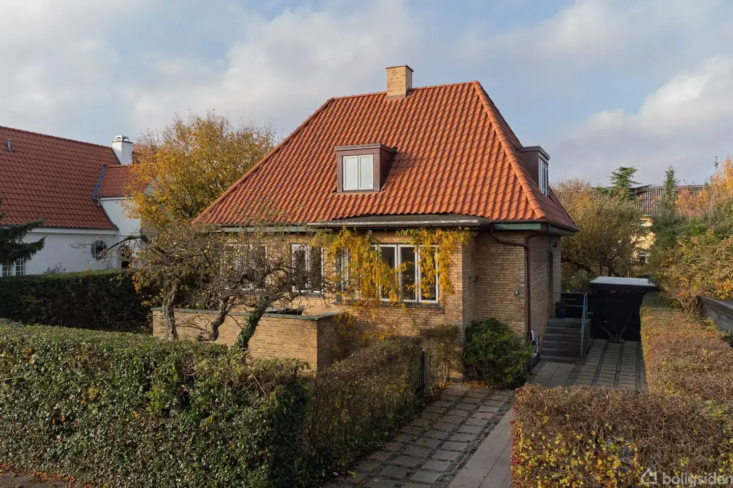 På den populære og børnevenlige Løvsangervej udbydes et suverænt charmerende og flot istandsat hus med en eventyrlig have fuld af stemning og to store terrasser. Her finder du hyggelige kroge og masser af plads til både store og små.Villaen er opført i 1934 og fremstår med rødt mansardtag, gule mursten og store vinduespartier – klassiske detaljer, der skaber et harmonisk og indbydende udtryk. Boligen rummer i alt 161 m² beboelse i to plan samt en brugbar kælder på 87 m².Indenfor mødes I af en ve
