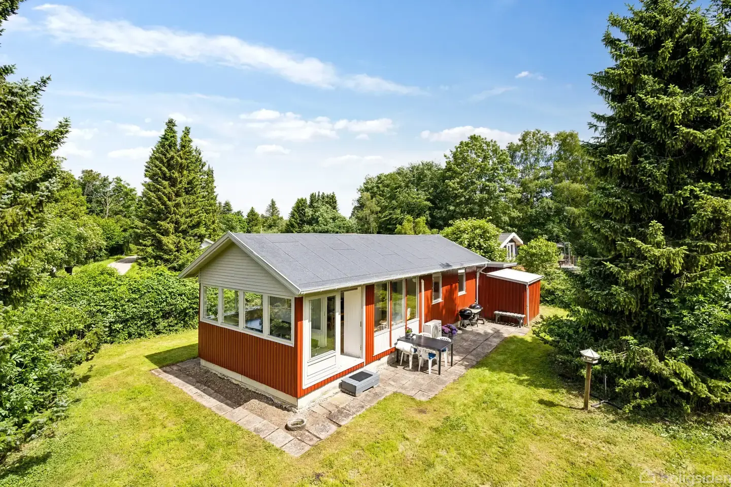Slå benene op, tag en dyb indånding og mærk både skuldrene og stilheden sænke sig med jeres helt eget sommerhus. Her breder naturen sig helt ind på den store grund, mens søer og skovområder venter lige på den anden side af matrikelgrænsen. Velkommen til Lokesvej 10. INDRETNINGFritidshuset tager sig flot og klassisk ud med træfacade i rød/hvide farver, og indenfor står 50 kvadratmeter klar til at tage godt hånd om de gode ferier og forlængede weekender. Siden 2015 er huset løbende blevet opdater