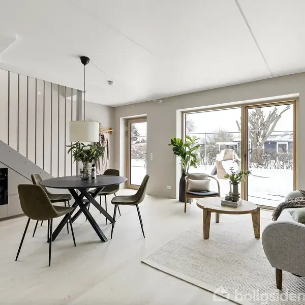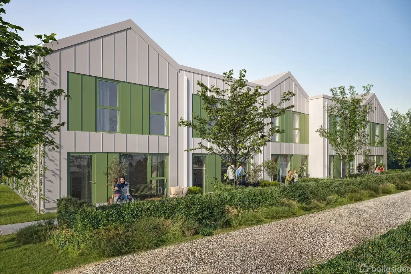 STRÅRÆKKERNE – NYOPFØRT RÆKKEHUS I 2 PLAN MED BYNÆR BELIGGENHED Velkommen til Strårækkerne - 10 nyopførte moderne arkitekttegnede rækkehuse i to plan er for dig, der vil bo bynært og drømmer om et nyt, moderne og funktionelt hjem med gode udearealer og en hyggelig fælleshave. Her er tænkt på både det private og det sociale. Hvert rækkehus har sin egen have – perfekt til stille morgener, grillhygge og sene sommeraftener. Samtidig byder fælleshaven på en grøn oase, hvor naboer mødes spontant over