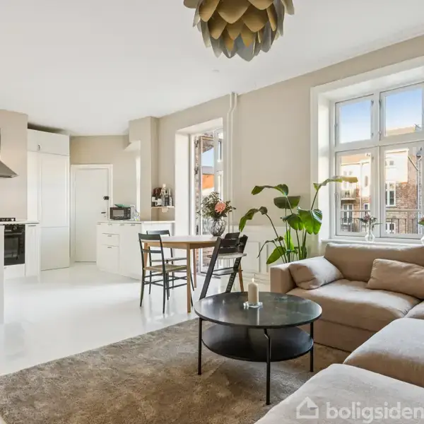 Smuk lejlighed med køkken-alrum, flot lysindfald og stor altan