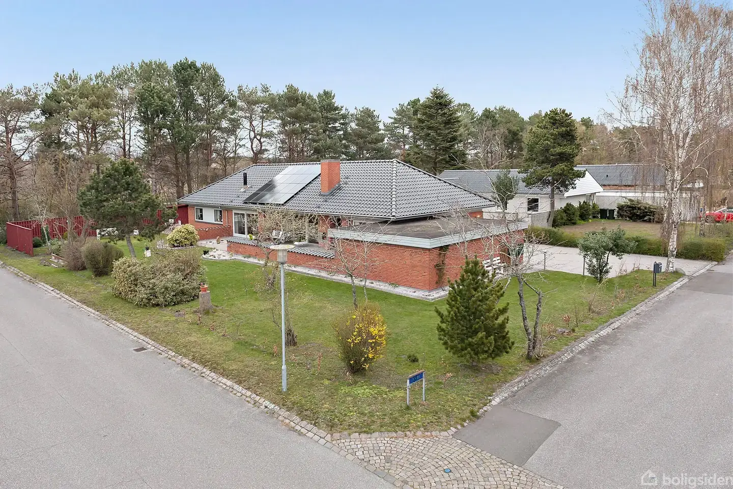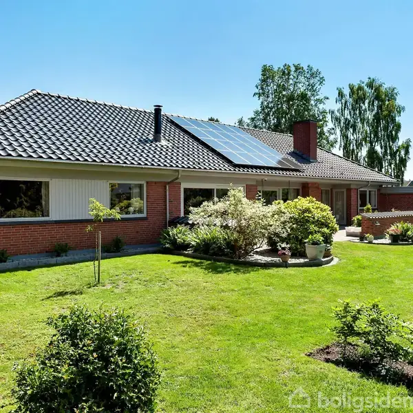 Åbent hus med tilmeldingskrav 22/2 - klik på billede - Smuk rødstensvilla med nyere tegltag beliggende i det attraktive "Digterkvarter" i Grenaa. Velindrettet med en værelsesafdeling m/3 værelser + badeværelse med bruseniche og en forældreafdeling, hvor der er soveværelse + badeværelse med bruseniche, badekar og sauna. Centralt i huset er det store køkken/alrum og stue - begge med brændeovne og med gulvvarme. Flot hall med klinkegulv og gæstetoilet. Bryggers m/vaskemaskine. Taget er ca. fra 2010 og solcelleanlægget er fra 2012. Der er 400 mm isolering på loftet - en villa med et beskedent energiforbrug. Smukt haveanlæg og hyggelig terrasse. Tilhørende muret garage m/værksted.