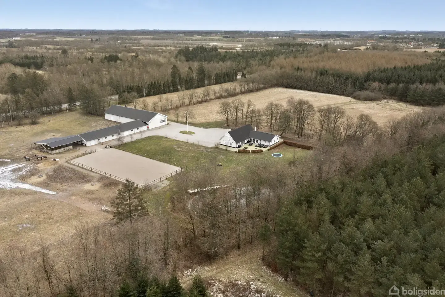 Velkommen til dette rummelige boliglandbrug med 205 m² bolig, smukt beliggende på en imponerende grund på hele 58.945 m² omgivet af åbne marker og skovklædte omgivelser. Her får du en ejendom med masser af luft, ro og plads til både familieliv og fritidsinteresser i naturskønne rammer. Den indflytningsklare bolig rummer fire værelser og to badeværelser, hvilket giver god plads til den store familie eller til dig, der ønsker hjemmekontor, gæsteværelser eller hobbyrum. Den velindrettede planløsni