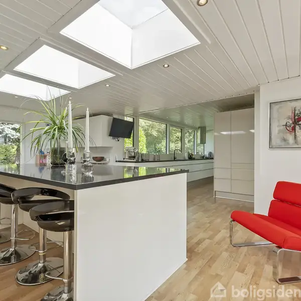 Velkommen til en arkitekttegnet og velholdt etplansvilla på 154 m² i attraktive Nyborg – med nye vinduer og døre fra 2024, elektrisk carport og direkte adgang fra garage til bolig. Villaen byder på et stort, stilrent køkken med hvide elementer, granitbordplader og en funktionel køkkenø med siddepladser. De smukke ovenlysvinduer skaber et skønt naturligt lysindfald over køkkenøen og giver rummet en lys og behagelig atmosfære. Fra både køkken og stue er der udgang til den store overdækkede terrass