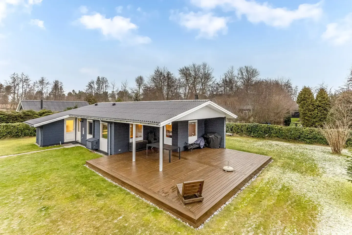 Velkommen til Lupinvej 24Velholdt sommerhus på nem og lukket grund nær "Lupin Torvet" med indkøb og spisested.Sommerhuset byder på en funktionel planløsning, hvor køkken og stue er placeret i åben forbindelse. Stuen rummer plads til både spiseafdeling og ophold. Desuden brændeovn i stuen.Sommerhuset rummer tre værelser, der giver fleksible løsninger for familie og gæster. Derudover findes entre, badeværelse med adgang til sauna samt integreret udhus med vaskemaskine og adgang udefra.Opvarmning a