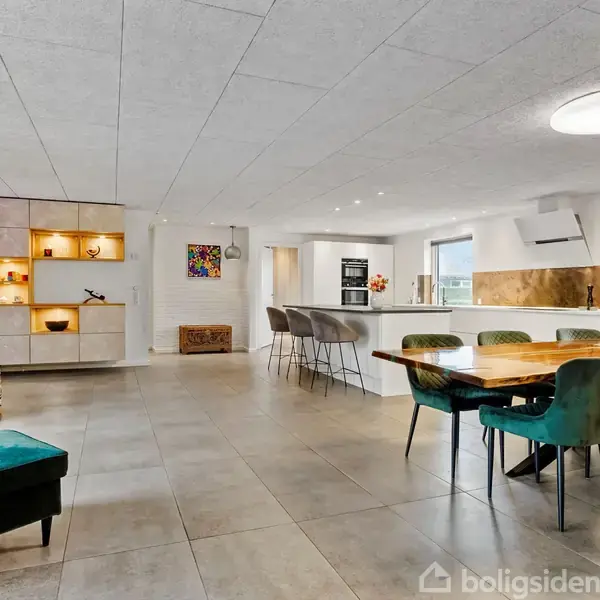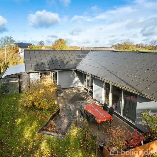 Åbent hus med tilmeldingskrav 31/1 - klik på billede - Selvom mange boliger kræver en større indsats for at nå energimærke A2010, er denne villa i Grønnemose allerede i mål - og det betyder meget lave leveomkostninger. Det høje energimærke, solcellerne og den energivenlige varmepumpe arbejder sammen om at holde forbruget nede, så du får en bolig med minimale driftudgifter og en økonomi, der mærkes positivt hver eneste måned. Derudover er boligen på hele 204 m2, og med to badeværelser og et stort opholdsmiljø er der plads til hele familien. I får også en fin, sydvendt have med en ugeneret terrasse, mens den praktiske beliggenhed gør det nemt at pendle til Odense og Trekantområdet. Faktisk er det svært at se, at villaen oprindeligt er fra 1973. Den er nemlig løbende opdateret med moderne løsninger, og senest er der kommet solceller og nyt tag i 2021. Primært opvarmes boligen med en luft-til-vand-varmepumpe, og der er installeret gulvvarme i næsten alle rum. Varmepumpen kombineret med husets solceller gør tilmed boligen yderst rentabel at bo i. Også indvendigt er der tænkt over detaljerne, og de gennemgående troldtektlofter er både pæne og lydabsorberende. Indretningen er særligt velegnet til børnefamilien, og de fire værelser er fordelt, så I kan få en forældreafdeling og en børneafdeling. Forældresuiten består af to værelser foruden et walk-in-closet, og dertil har I eget badeværelse. Det andet badeværelse har plads til vaskefaciliteter, og begge er moderniseret i stilsikre, afdæmpede materialer. De to oplagte børneværelser ligger sammen med et multirum, som kan indrettes til de hobbyer, I sætter mest pris på. Endelig får I et overordentligt stort opholdsmiljø med køkken-alrum og stue i åben forbindelse. Køkkenet er moderniseret med hvide, grebsfri elementer, og den charmerende stue har et unikt gulv i gamle mønter, som giver rummet en hyggelig stemning. Bemærk også den pæne entré, som afrunder den praktiske planløsning. Villaen ligger på en tryg, lukket vej i Grønnemose – en lille by, som især har glæde af at ligge tæt på motorvejen. I får dermed nem adgang til de mange arbejdspladser i Odense og Trekantsområdet. For fornødenheder som indkøb, skole og pasningsmuligheder skal I se mod Aarup, der ligger fem kilometer væk. Kontakt os for en fremvisning.