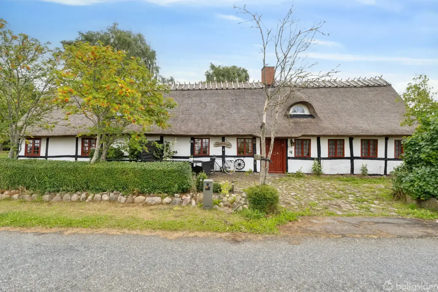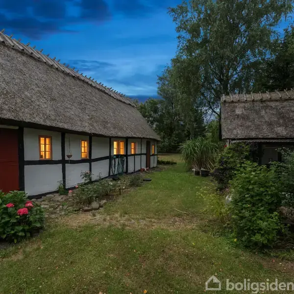 Denne fritidsejendom nær Præstø henvender sig til jer, der søger en ferieoase, som emmer af atmosfære. Her er tale om et idyllisk bindingsværkshus, som rummer 123 kvadratmeter. Disse er blandt andet fordelt på fire værelser og en vinkelstue samt et spisekøkken. Boligen omgives af en dejlig have, og det tilhørende udhus giver ekstra plads til værkstedssysler. Ejendommen ligger i rolige, landlige omgivelser – direkte ud til åbne marker. Naboerne er søde og hjælpsomme, og lokalområdet byder i det hele taget på et godt sammenhold. Det naturskønne område skaber ideelle rammer for friluftslivet i form af skovarealer, smukke vandreruter, badesteder og havnemiljøer. Fra adressen er der kun omkring fem kilometer til købstaden Præstø, der supplerer med en bred vifte af butikker, caféer og spisesteder. Grunden tæller 1.200 kvadratmeter, og haven prydes af gamle træer og frodig beplantning. Udearealets stenbelægning passer perfekt til ejendommen, og mod vest er der etableret en hyggelig lækrog. I forlængelse af det lille, stråtækte udhus findes desuden en terrasse. Huset præsenterer sig utroligt charmerende med hvid facade, sort bindingsværk og stråtag. En del af taget er udskiftet i 2023, hvor der ligeledes blev monteret nye kvistvinduer med termoglas. Gavlvinduerne er også forholdsvis nye, og flere af de fine bondehusvinduer har forsatsvinduer. Det skal endvidere nævnes, at boligen fik installeret varmepumpe i 2019, som styres via app. Indenfor er træ det gennemgående materiale, og størstedelen af rummene har synlige bjælkekonstruktioner. I vinkelstuen er loftet ført til kip, og stuen er nem at indrette med spiseafsnit og sofasektion. Det stemningsfulde køkken har flisegulv med gulvvarme, og det er udført med klassiske fyldningselementer og en halv, muret kogeø. Et af boligens værelser ligger separat, mens de tre resterende værelser er samlet omkring fordelingsgangen. I denne afdeling er der tillige et badeværelse og tre disponible rum.