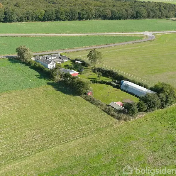 EJENDOMMEN Denne villa på 291 m² ligger på en stor grund på 4.852 m² i rolige og grønne omgivelser. Den klassiske facade med sprossede vinduer skaber et imødekommende førstehåndsindtryk, mens de omgivende grønne arealer giver privatliv og udsigt over åbne marker. Indkørslen har god plads til flere biler, og med både garage og værksted er der ideelle rammer for opbevaring og hobbyaktiviteter. Boligen består er to boliger, som giver dig mulighed for at bo med dine forældre, bedste venner eller tee