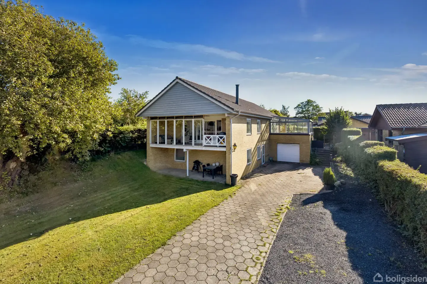 Drømmen om det afslappede og ugenerede villaliv kommer til sin fulde ret i rammerne af dette velholdte hus i Kolding - hvor der er minimalt vedligehold, er der nemlig god tid til at nyde både den dejlige bolig inde og den hyggelige have ude. I finder jeres nye hjem i Bramdrupdam, bare få minutter fra alt til den velfungerende hverdag. Velkommen til.I skal ned ad et stille, lukket vænge, ind ad en lang indkørsel og så ind på jeres egen lille oase af en koteletgrund: Her finder I villaen, opført i