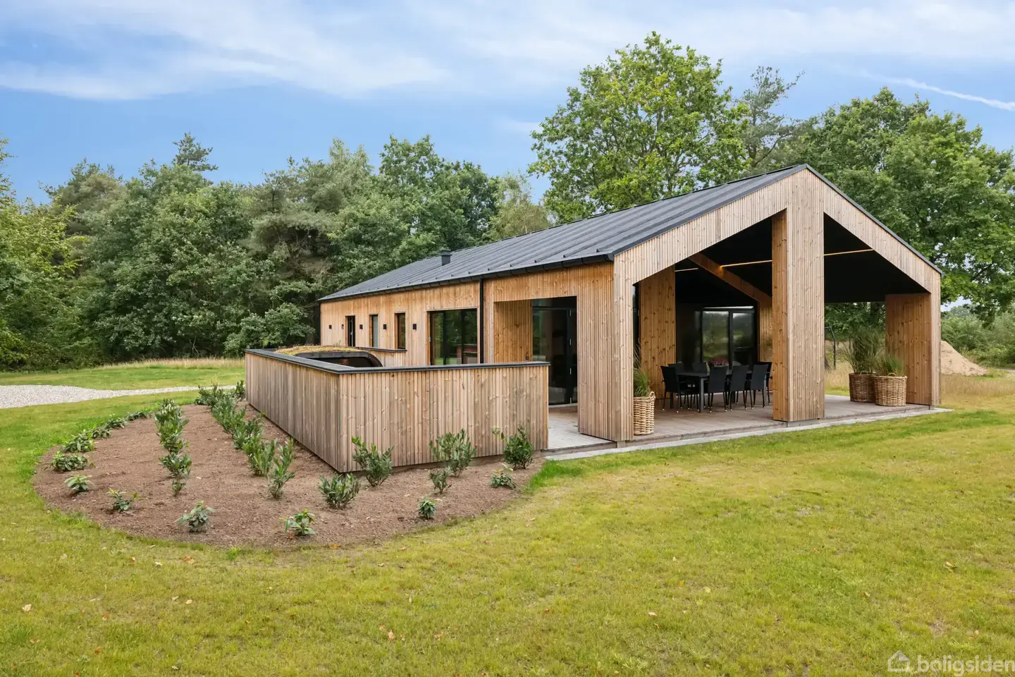 Dette arkitekttegnede fritidshus fra 2025 lever op til alle tidens standarder for æstetik, teknik, funktionalitet og komfort. Her får I rene linjer, uden at det føles klinisk, og med velvalgte kvalitetsmaterialer sikres en behagelig rumfornemmelse, der på én og samme tid føles storslået og hyggelig. Et af kernetemaerne i huset er vedligehold – eller nærmere bestemt mangel på samme. For her skal ikke arbejdes. Her skal slappes af, og derfor er der valgt træbeklædning både inde og ude, som ikke s