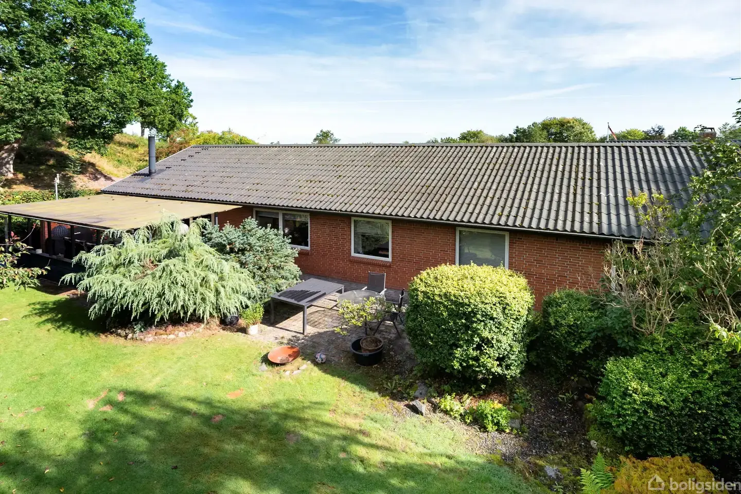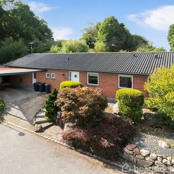 Åbent hus med tilmeldingskrav 1/2 - klik på billede - Her får du mulighed for at flytte ind i et hjem, der ligger fredeligt og tilbagetrukket for enden af vejen. Du bor privat og ugeneret – og samtidig med gode naboer og et trygt nærmiljø lige om hjørnet. Rundt om boligen finder du grønne områder og stisystemer, der indbyder til både hverdagens gåture og leg i det fri. Boligen er løbende moderniseret og står klar til indflytning. Indretningen er både lys og funktionel, med rummelige værelser og god plads til hele familien. Du bliver budt velkommen i en stor entré, hvorfra der er adgang til to rummelige værelser. Herfra fører fordelingsgangen dig videre til et soveværelse med god skabsplads samt et badeværelse. Stuen og køkkenet ligger i åben forbindelse og skaber en naturlig ramme om fællesskabet – her er plads til både afslapning og hverdagsmåltider. Bag køkkenet finder du et praktisk bryggers eller viktualierum med ekstra opbevaringsplads. Haven er et grønt fristed med hyggelige stier, en havedam og plads til både boldspil og afslapning. Der er flere terrasser – en af dem overdækket – så du kan nyde udelivet i alt slags vejr. Foran huset er der gode parkeringsforhold, blandt andet i carporten, og der er masser af opbevaringsmuligheder i skure og udhuse. Du kommer til at bo i hjertet af Ans By – en by med det hele lige i nærheden: Indkøb, skole, daginstitutioner, tandlæge, løberuter og et aktivt foreningsliv med masser af fritidstilbud for både store og små.