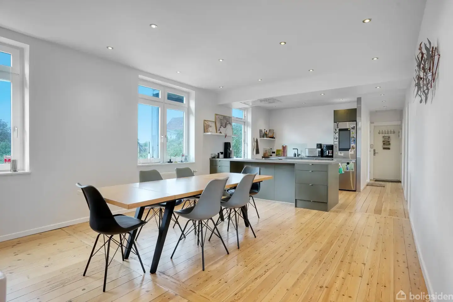 Villalejlighed 126 m² på hjørnegrund med stor have og brugbar kælder Velkommen til denne rummelige og velindrettede villalejlighed på 126 m², beliggende på en solrig hjørnegrund i et attraktivt villakvarter. Her får du en sjældent udbudt bolig, hvor klassisk 1920’er-charme smelter sammen med nutidig funktionalitet – ideel for familien, der ønsker både plads, lys og adgang til egen have. Lejligheden byder på fire værelser, hvoraf to i dag fungerer som soveværelser, samt to lyse stuer, der giver