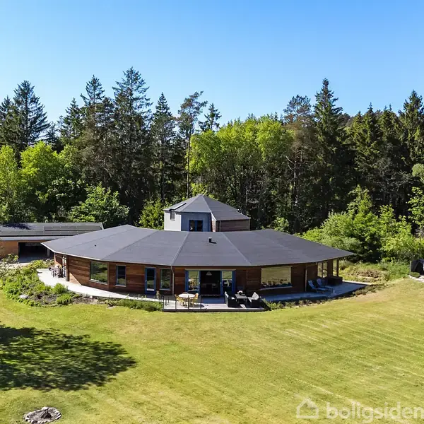 Midt i det naturskønne landskab tæt på attraktive Sejs-Svejbæk ligger denne helt unikke ejendom fra 2023. Huset er placeret på en imponerende naturgrund på hele 11.391 kvadratmeter, hvor ro og skønhed går hånd i hånd. Her er der ikke overladt noget til tilfældighederne – hver en detalje er gennemtænkt, lige fra de smukt vinklede panoramavinduer, der inviterer den betagende natur indenfor, til det eksklusive JKE-køkken med massive træskuffer. Med sine 248 kvadratmeter rummer boligen rigelig plads