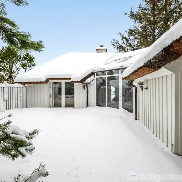 Vågn op til Vesterhavets natur Forestil dig at vågne til lyden af vinden i marehalmen og duften af hav og hede. Her, i gåafstand til Vesterhavets brede sandstrand, klitter og solrige lækroge, ligger dette stemningsfulde fritidshus omgivet af noget af Danmarks smukkeste og mest rå natur. De kuperede hedearealer og de vidtstrakte løv- og nåletræsplantager inviterer til lange gåture, løbeture i det fri eller udfordrende MTB-ture – året rundt. Fredelig beliggenhed med fællesfaciliteter tæt på Huset er fredeligt placeret for enden af en stikvej, hvor privatlivet er i højsædet, og hverdagen langsomt får lov at glide i baggrunden. Mod vest ligger områdets fællesbygning med swimmingpools, og mod nord finder du tennisbanerne – tæt på faciliteterne, men stadig med roen intakt. Klassisk sommerhusstemning og rummelighed Indenfor mødes du af en varm og indbydende atmosfære. Loft til kip og smuk, synlig loftkonstruktion giver alle rum en særlig rummelighed og karakter. De originale teglgulve, den nedsænkede stue og pejseindsatsen skaber den helt rigtige sommerhusstemning – perfekt til både lange sommeraftener og hyggelige efterårsweekender med ild i pejsen. Lyst køkken/alrum med komfort i fokus Køkken/alrummet er husets naturlige samlingspunkt, hvor lyset strømmer ind gennem det store vinduesparti, som blev udskiftet i 2019. Her er de skrå vinduer udstyret med solfilm, hvilket giver et behageligt indeklima og dæmper solens varme, uden at gå på kompromis med det smukke lysindfald. Terrassen bliver på den måde en naturlig forlængelse af opholdsrummet på lune dage – perfekt til fælles måltider, brætspil og gode samtaler. Plads til familie og forkælelse Badeværelset med sauna indbyder til ren forkælelse efter en dag i naturen, og husets fire gode værelser giver plads til både familie og gæster. Skønne uderum og solid vedligeholdelse Udenfor venter den skønne træterrasse, hvor kaffen smager lidt bedre, og tiden føles lidt langsommere. Huset er løbende vedligeholdt og fik i 2020 nyt stråtag med brandhæmmende undertag – en tryg og solid ramme om ferielivet mange år frem. Tæt på byliv – langt fra hverdag Med kun ca. 4 km til Fjerritslev er der nem adgang til indkøb, caféer, golfbane, svømmehal og byliv, når det ønskes – men altid med muligheden for at vende tilbage til stilheden, naturen og den særlige ro, som kun et ægte fritidshus kan give. Et sted med sjæl Et sted, der ikke bare er et hus – men en ramme om minder, nærvær og livskvalitet.