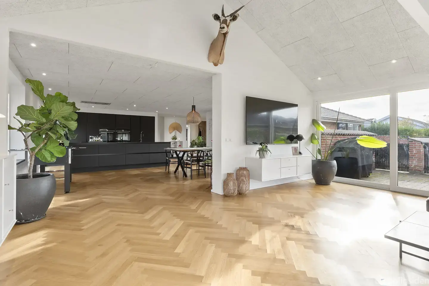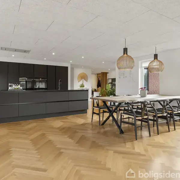 Velkommen til Lyngholmvej 7 – en villa, der imponerer fra første øjeblik. Her får du moderne arkitektur, kompromisløs kvalitet og et fantastisk lysindfald, der tilsammen skaber et hjem i særklasse.Huset blev totalrenoveret i 2021 og fremstår knivskarpt med bl.a. troldtektlofter med spots, eksklusive Urban Hald sildebensparketgulve og gulvvarme i hele boligen – alt sammen med fokus på komfort og æstetik.Du bydes velkommen i en lys entré med adgang til et stort bryggers med rigelig skabsplads. Her