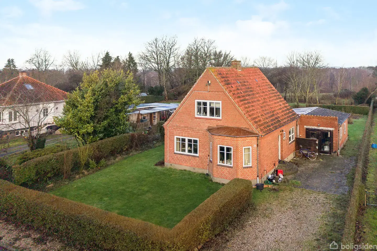 Ejendom i landlige omgivelser med fleksible anvendelsesmulighederDenne ejendom er beliggende i rolige og naturskønne, landlige omgivelser og henvender sig til dig, der ønsker fred, luft og mulighed for at skabe dit eget hjem. Ejendommen rummer gode muligheder for at sætte sit personlige præg og forme boligen efter egne ønsker og behov.Boligen er opført i klassiske røde mursten, som giver et solidt og tidløst udtryk. Indenfor finder du et køkken placeret i forlængelse af den lyse vinkelstue, hvil