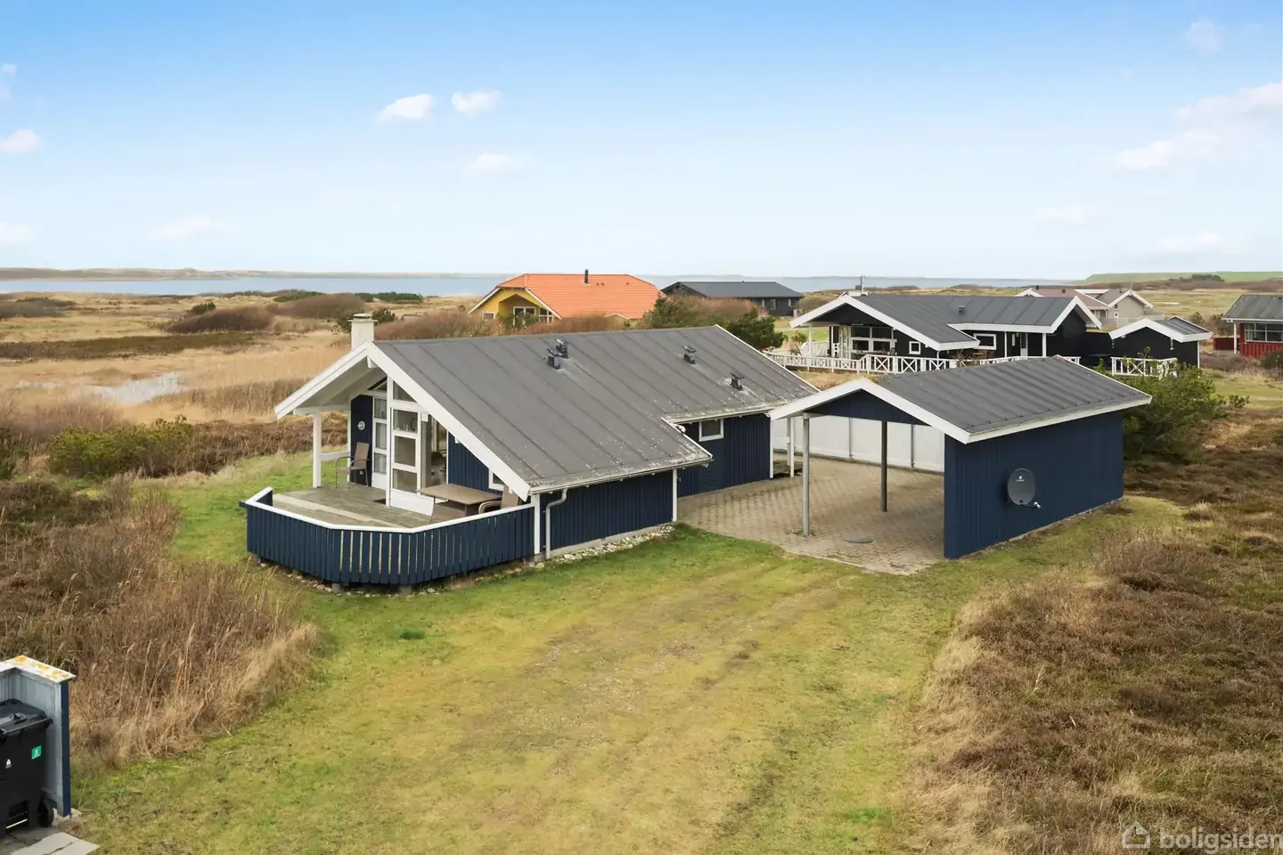 På Lyngsletten 34 i Ferring udbydes dette indbydende fritidshus, som ligger roligt placeret midt i det karakteristiske klitlandskab - med korte afstande til både strand, natur og oplevelser. Her får I et velholdt sommerhus, der er nemt at holde, og som danner en ideel ramme om både afslappende ferier og hyggelige weekender året rundt. Selve huset er opført i 2002 og fremstår i pæn og velpasset stand. Indretningen byder på et lyst og åbent opholdsrum, hvor stue og køkken er forenet og danner husets naturlige samlingspunkt. Her er loft til kip, et godt lysindfald fra de store vinduespartier og en hyggelig brændeovn, som bidrager til den klassiske sommerhusstemning. Køkkenet er funktionelt indrettet med god bord- og skabsplads, og der er plads til samvær omkring måltiderne. Huset rummer to gode værelser samt en alkove, der giver ekstra soveplads - perfekt til både familie og gæster. Badeværelset er lyst og praktisk indrettet, og planløsningen er gennemtænkt med fokus på komfort og funktionalitet. Udenfor får I flere dejlige terrassearealer, hvor solen kan nydes fra morgen til aften, og hvor udsigten over det åbne landskab skaber en helt særlig ro. Til ejendommen hører desuden carport og skur, som giver gode opbevaringsmuligheder. Området omkring Ferring Strand er kendt for sin smukke og uspolerede natur. Her bor I tæt på Vesterhavet, klitterne og de brede sandstrande, som indbyder til lange gåture, badning og naturoplevelser året rundt. Samtidig er der kort afstand til både Lemvig, Harboøre og Thyborøn, hvor I finder indkøb, spisesteder og aktiviteter for hele familien. Et oplagt valg for jer, der drømmer om et fritidshus i rolige omgivelser med naturen helt tæt på. Kontakt EDC Lemvig på 96 63 40 00 for mere information.