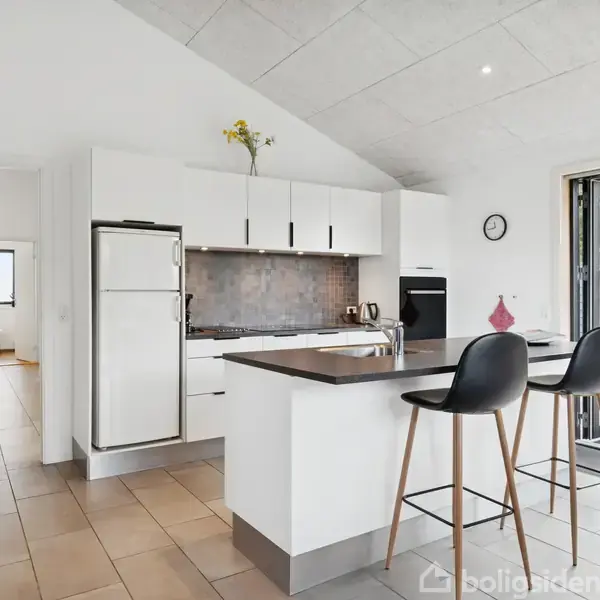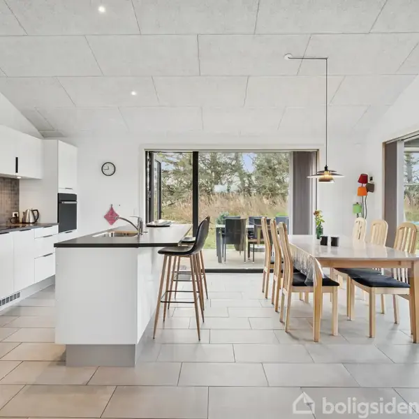 Moderne sommerhus på dejlig naturgrund i Klegod  Når weekenden står for døren, skal du glæde dig til at sætte kursen mod vestjyske Klegod og dette skønne fritidshus fra 2021, hvor moderne indretning møder klassisk sommerhuscharme. Her vil du straks bemærke den fantastiske rumfornemmelse, de store vinduespartier, det spændende aktivitetsrum og det hyggelige leverum, der har en fantastisk udsigt til haven. Ejendommen ligger på en dejlig naturgrund i rolige omgivelser, som du kan nyde på den overdæ