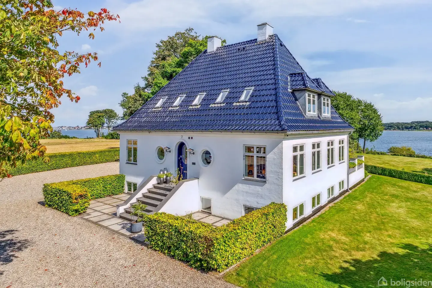 Denne klassiske patriciervilla ligger helt enestående på Lyngsoddevej 71 – højt hævet over Lillebælt med en panoramaudsigt på hele 270 grader. Herfra ser man ud over det smukke farvand mod både nord, øst og vest, med udsigt til Den Nye Lillebæltsbro, Middelfart, Strib og de omkringliggende skove. Beliggenheden er privat og ugeneret – uden naboer tæt på – og samtidig tæt på både natur, skoler, daginstitutioner og indkøb. Grunden strækker sig hele vejen ned til vandet, og det maritime liv kan nyde