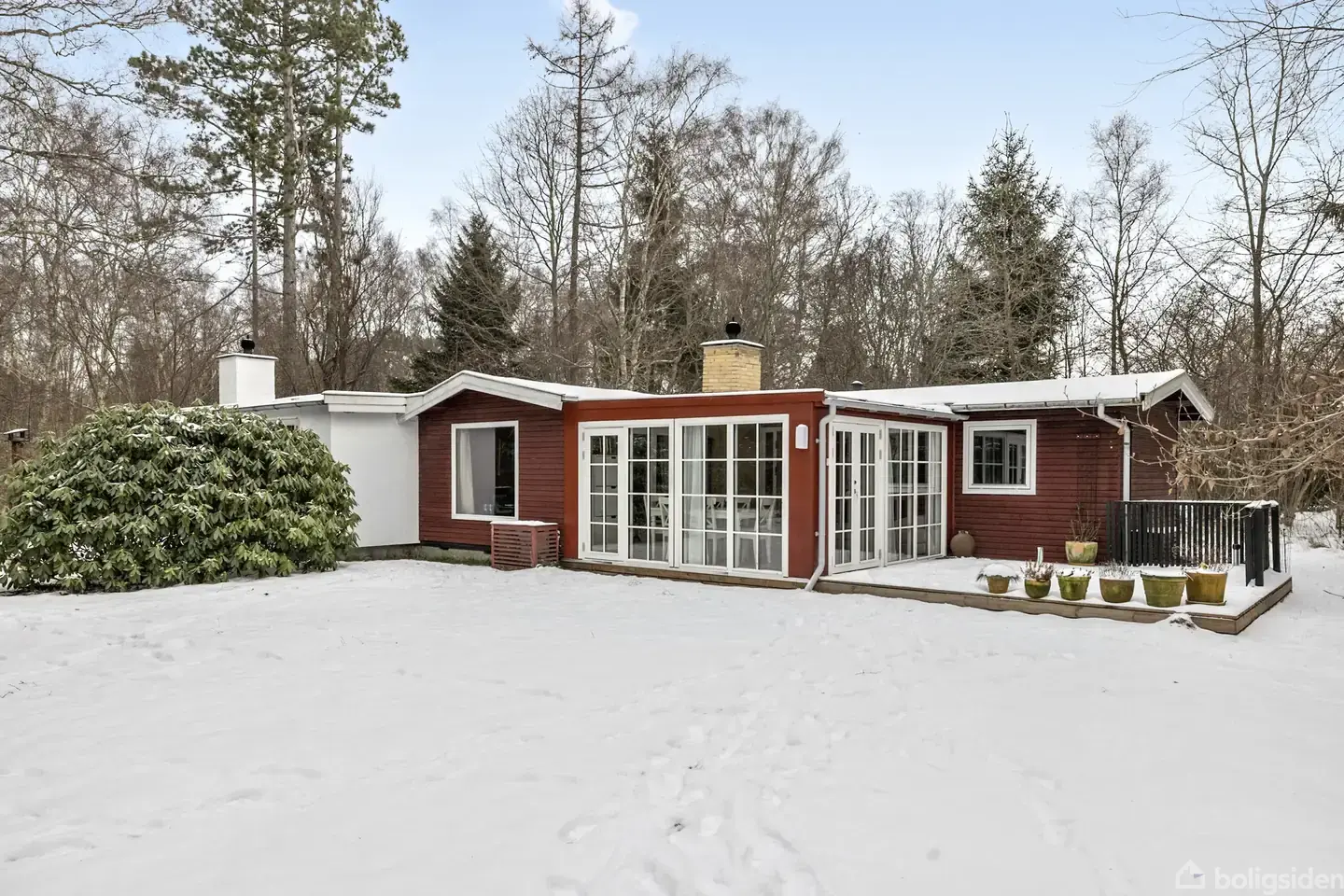 Beliggende for enden af lukket vej i et roligt område finder du dette skønne, hyggelige og charmerende fritidshus på en dejlig stor og solrig grund på hele 2738 kvm. Der er godt naboskab og offentlig transport i nærheden.På grunden er der en hel lille skov med store træer. Gennem husets vinduer ser du i sommerhalvåret lige ud på træer og buske, så du føler, at du sidder midt i det grønne. Der er god plads til boldspil og leg på den store græsplæne. Solen og udelivet kan du nyde på en af de to de