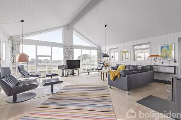Er det udsigt til havet og højt til loftet, du søger - så se lige her! Dejligt sommerhus med helt unik beliggenhed på skøn kuperet grund og fantastisk udsigt over Rindby, Esbjerg Havn og havet. Sommerhuset er højt beliggende med stor terrasse hele vejen omkring huset, så solen kan rigtig nydes dagen lang - her er kort afstand til stranden og indkøb. Sommerhuset indeholder dejlig lyst køkken med alt i hvidevare og hyggelig alrum med god plads til familien. Fra køkken/alrum er der åben forbindel