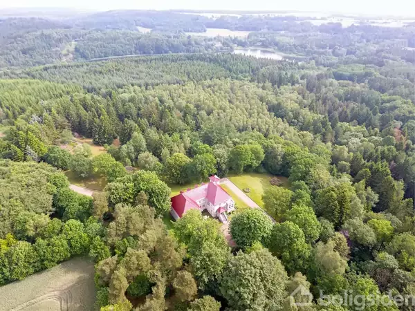 Ind imellem, ikke ofte, ja, faktisk meget sjældent dukker der hemmeligheder op af mulden et sted, hvor noget har levet sit eget, privilegerede liv i en hemmelig verden de sidste mange, mange år. Som Tutankhamon i ægypternes Kongernes Dal, hvis grav gemte på rigdomme og hemmeligheder i flere tusinde år. Men også som ejendommen på Lystruphavevej 7 dybt inde i Midtjylland, som har forputtet sig i jydernes Bryrup i over hundrede år. Nuværende familie har boet her i snart 5 årtier, og ejendommen har med tiden fået tilbygning og selvfølgelig sin patina, sin særegne ædelrust fra en tid med selvbiografi og memoirer. Sådan vil det altid være efter et langt liv fuld af erindringer. Det er bygget i 1906 i en tid, hvor velhavende københavnere opførte landsteder på nogle af de mest natursmukke beliggenheder i Jylland. Det tilhørende jordstykke er udlagt i park/tæmmet natur og er på 53.706 m2 beliggende 105 meter over havet. Her finder man kæmpe rododendronbuske, gange og stier samt egen sø i et stærkt kuperet terræn. Alt sammen helt ugeneret og uden offentlig adgang. Ejendommen er på 632 m2 bolig med et indkørselsparti, man skal til godsernes England for at finde tilsvarende. ’Monlieu’, står der fransk på tårnfacaden, ’Mit sted’. Så sandelig, må vi sige, for her kan man nemt bosætte sig hemmeligt de næste 5 årtier. For jagt- og hestefolk er det interessant, at matriklen på naboejendommen Løvevej 19 grænser direkte op til og ejes af samme familie. Ved også at overtage den får man ikke mindre end næsten 64 hektar jord at boltre sig på. I landzone forstås, med de skattefordele, der følger med. Her er masser af rådyr, dådyr, ænder samt kronvildt på strejf. Her er bakker og dale, søer, moser, skov, marker og gravhøje. Jorden bortforpagtes i dag for ét år ad gangen. Hverdagen med daglige fornødenheder som indkøb og skole er tilgængelig i Bryrup, der ligger i en markant dal midt i det Jyske Søhøjland. Bryrup med dens små 1600 indbyggere er ikke verdens største by, alligevel finder man her bl.a. Europas største galleri. Fra ejendommen på Lystruphavevej er der bare 20 minutter til Silkeborg.