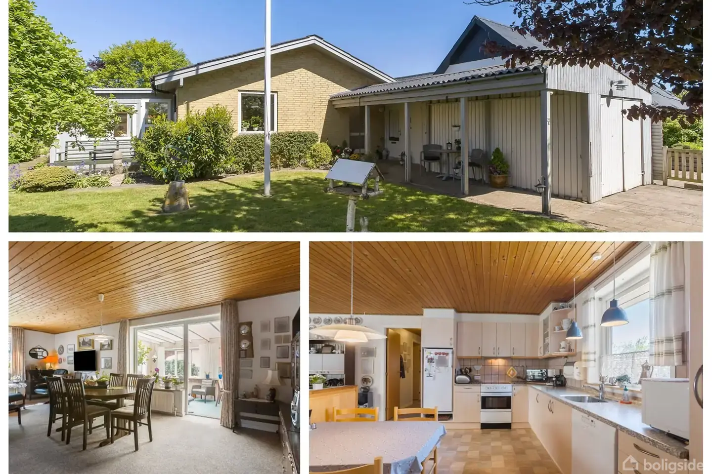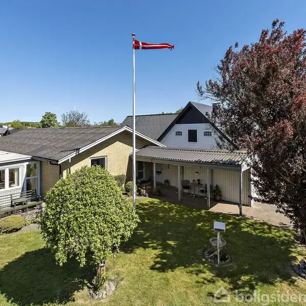 Velholdt og velbeliggende villa med skøn have og god indretning Denne dejlige villa fra 1985 er opført i klassiske gule sten og fremstår yderst velholdt – perfekt til den mindre familie, det modne par eller den enlige, der ønsker en bolig i rolige omgivelser med plads og komfort. Med sine 105 veludnyttede kvadratmeter byder boligen på en optimal planløsning, der gør hverdagen både nem og hyggelig. Villaen er beliggende på en skøn, lukket grund på hele 786 m², hvor privatlivet er i fokus. Haven er overskuelig og nem at vedligeholde – ideel til både børneleg og afslapning i solen. Her kan du nyde livet under åben himmel på de mange gode uderum, som boligen tilbyder. Indendørs bydes du velkommen i en praktisk entré med god garderobeplads. Herfra er der adgang til boligens hjerte – den sydvestvendte stue, hvor det store vinduesparti giver et skønt lysindfald hele dagen. Stuen ligger i åben forbindelse med et stilrent og velindrettet køkken med lyse elementer og god skabsplads, hvilket skaber en naturlig ramme om fællesskabet og hverdagslivet. Fra stuen er der udgang til en dejlig, vestvendt udestue, som forlænger sommersæsonen og giver mulighed for at nyde haven næsten året rundt. Udestuen leder direkte ud til en charmerende, overdækket terrasse – det perfekte sted til aftenkaffen eller hyggelige grillaftener med familie og venner. Boligen rummer desuden et soveværelse med faste skabe, to gode og regulære værelser, samt et pænt og lyst badeværelse med klinker på gulvet og fliser til loft, bruseniche og stort møbel med nedfældet vask – alt holdt i lyse materialer. Til villaen hører en fin garage med tilhørende værkstedsrum, som giver ekstra opbevaringsplads og mulighed for hobbyprojekter. Derudover er der en overdækket plads, ideel til cykler, haveredskaber eller ekstra opmagasinering. Her får du en virkelig velindrettet og indbydende bolig med en attraktiv beliggenhed i et roligt kvarter – tæt på natur, indkøb, skole og daginstitutioner.