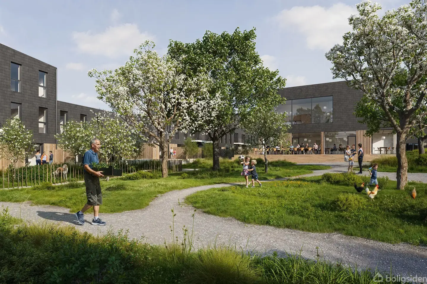 I Måløv, Ballerup Kommune, etableres et nyt by-økologisk bofællesskab med økologisk fællesspisning og elbils deleordning. Bofællesskabet består af 44 ejerlejligheder i varierende størrelser og med forskellige fleksible planløsninger. Den københavnske arkitektvirksomhed Werk, som har solid erfaring med bofællesskabsarkitektur, fra både Danmark og udlandet, har tegnet byggeriet. Bebyggelsen opføres med blandet rækkehus- og etageboligbyggeri tilknyttet et fælleshus på i alt ca. 488 m2. Fællesh