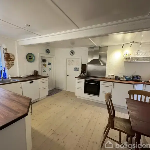 Hyggelig firlænget ejendom med skøn gårdsplads, dejlig have samt egen strandgrund.Ejendommen ligger på en 2.281 m2 stor grund med flot anlagt have, og der medfølger tilmed et stykke strandgrund ved Mårup Havn, så I får det bedste af både land- og strandliv. Fra den hyggelige gårdsplads træder I ind i entréen, hvorfra der er adgang til køkkenet mod venstre og indgang til badeværelse med kar. I køkkenet finder I en baggang med udgang til haven, garderobe og to praktiske spisekamre i forlængelse, m