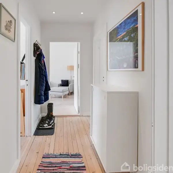 På 1. sal i en smuk ejendom fra 1933 finder man denne velindrettede lejlighed, hvor planløsning, lys og beliggenhed går op i en sjælden velfungerende helhed. Her bor man midt i Hellerup med Strandvejen lige udenfor og grønne omgivelser på den modsatte side – samt Øresund blot få hundrede meter væk. Lejligheden rummer 105 m², og man bydes velkommen i en entré, der fordeler boligen naturligt. Dagligstuen vender mod Strandvejen og det hyggelige torv og har et behageligt lysindfald samt god plads til ophold og indretning. På den modsatte side af lejligheden ligger spisestuen i åben forbindelse med køkkenet. Denne åbning – som adskiller sig fra den oprindelige planløsning i byggeriet – giver et tydeligt løft i både lys og rumfornemmelse og skaber en naturlig overgang mellem køkken og spisestue. Køkkenet er et stilrent Poggenpohl-køkken med lyse fronter og god arbejdsplads. Fra spisestuen er der udgang til altanen, som vender mod Blidah Park. Her er udsigt til grønne fællesarealer og store, smukke træer. Boligen rummer desuden et stort soveværelse samt et ekstra værelse, der egner sig godt som børneværelse, gæsteværelse eller hjemmekontor. Badeværelset er pænt og funktionelt med separat bruseniche samt vaskemaskine og tørretumbler. De lyse trægulve går igen i boligen og binder rummene godt sammen. Beliggenheden er en af Hellerups bedste med kort afstand til Øresund, Charlottenlund Fort, skov, gode skoler, Strandvejens mange butikker, caféer, restauranter og offentlig transport. Beliggenheden i Blidah Park giver et roligt, grønt miljø samtidig med, at Strandvejens liv er lige udenfor døren. Til lejligheden hører privat kælderrum. Kontakt os for en fremvisning.