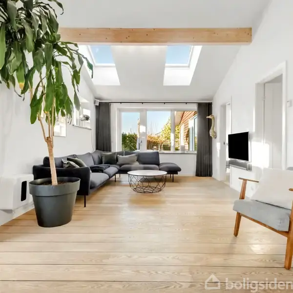 Denne indbydende familievilla er opført med stor sans for detaljen og fremstår både moderne og tidløs. Store glaspartier og elegante ovenlysvinduer sikrer et fantastisk lysindfald og skaber en let og luftig atmosfære i hele boligen. Hjemmet er kendetegnet ved rene linjer, en gennemtænkt planløsning og solide kvalitetsmaterialer. I 2007 fik ejendommen nyt tag, og samtidig gennemgik boligen en omfattende renovering, hvor der blandt andet blev etableret gulvvarme i hele huset – en komfort, der mærkes året rundt. Boligens naturlige samlingspunkt er det stilrene køkken-alrum med moderne køkken og god spiseplads, der danner de perfekte rammer om både hverdagslivet og hyggelige stunder med familie og gæster. Stuen imponerer med loft til kip, smukke ovenlysvinduer og direkte adgang til den sydvestvendte terrasse, som forlænger boligen ud i det fri. Ejendommen byder desuden på et elegant master bedroom med tilhørende rum, der oplagt kan anvendes som walk-in-closet eller hjemmekontor. Herudover rummer boligen fire regulære værelser, hvoraf tre er samlet i en separat afdeling – ideel som børneafdeling. Dertil kommer to flotte badeværelser samt et praktisk bryggers med udgang til en mindre overdækning og videre adgang til udhus/garage. Udenfor venter en stor terrasse og en nem, ugeneret have, der indbyder til afslapning og udeliv. Beliggenheden er særdeles attraktiv på en rolig, lukket vej uden gennemkørende trafik og med kort afstand til smukke strandenge samt hverdagens faciliteter som skole, svømmehal, indkøb og øvrige fritidstilbud.
