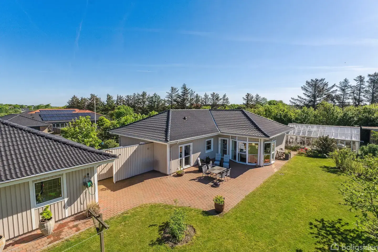 I denne indbydende villa kan I skabe et hjem eller en feriebolig fyldt med charme og livskvalitet. Villaen fremstår moderne og velholdt, og den åbne planløsning sikrer et fantastisk lysindfald i alle rum.Boligen strækker sig over 157 kvadratmeter og rummer soveværelse samt 3 værelser. Den åbne stue med stor karnap indbyder til hyggelige stunder med naturligt lys fra de store vinduer, hvilket skaber en varm atmosfære. Fra stue, soveværelse samt det ene værelse er der udgang til flisebelagt terras