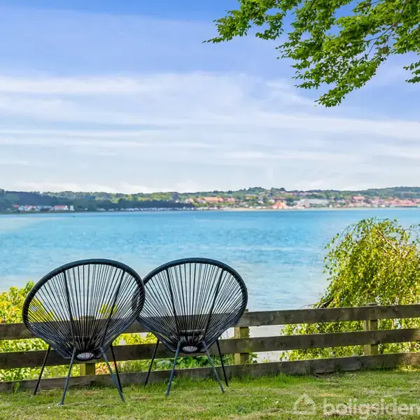 På Makrelvej 9 finder du et særligt sommerhus med en helt unik stemning og en fantastisk beliggenhed nær Egsmark Strand og det blå vand i Ebeltoft Vig. Huset kombinerer moderne komfort med en smuk udsigt – her oplever du naturens lys, ro og nærvær, både ude og inde. Det store leverum er hjemmets hjerte og et af husets helt store højdepunkter. Fra de store vinduespartier har du en imponerende udsigt over Ebeltoft Vig og ind mod byen, som kan nydes fra både sofaen og spiseområdet. Om dagen glitrer